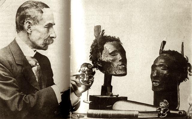 Major Robley with his collection. He offered to sell it to the Museum of New Zealand but when his offer was declined they were sold to the American Museum of Natural History