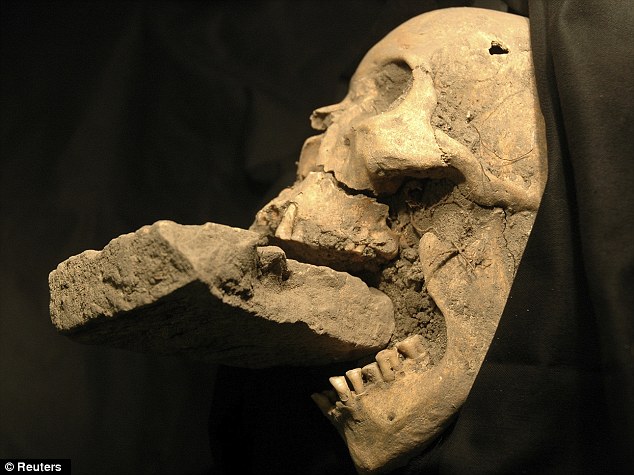 National Geographic described Matteo’s team’s discovery in this way: “The partial body and skull of the woman showed her jaw forced open by a brick (above)—an exorcism technique used on suspected vampires.” Of course it wasn’t really a Vampire but it was evidence that there had been a very real fear of vampires in the Medieval era, particularly as the process of bodily decay was misunderstood. In times of plague, when graves were often reopened to inter more cadavers, the unusual effects of decomposition were misinterpreted. Purge fluid, which is usually a dark brown/red in colour, can be forced out of the orifices of a decomposing corpse due to the build-up of gases – and this fluid looked just like dried blood encrusted around the mouth of the deceased, giving the impression they had been feeding. Also, due to bacterial decay, the burial shrouds of the dead would disintegrate over the mouths first causing the teeth to be bared. It was also believed that vampires spread pestilence (female ones in particular), because there was no understanding of epidemiology. In order to combat these effects something inedible – such as a brick – needed to be forced into the mouth of the corpse to stop them being able to feed from anything else. This was commonly used as an exorcism technique in Eastern Europe at the time.